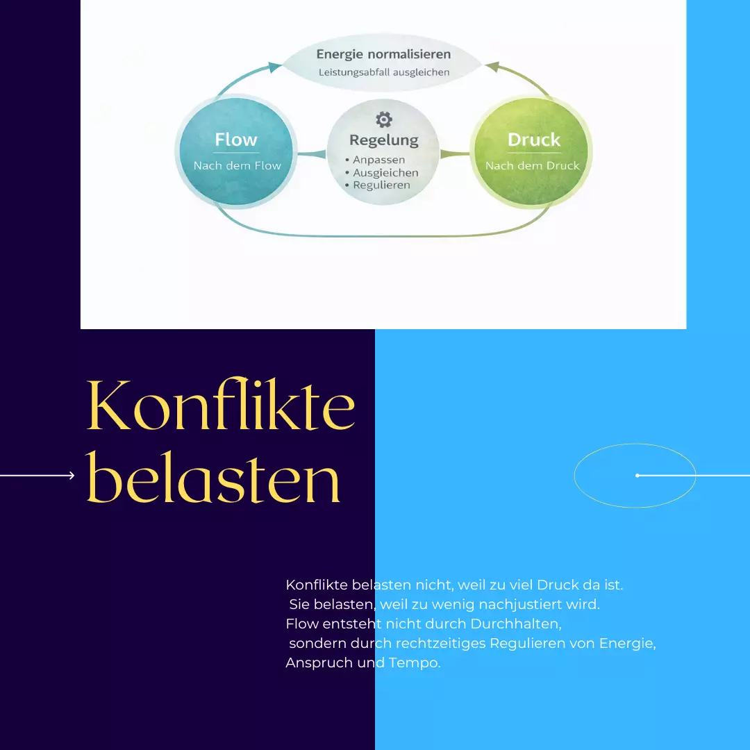 Konflikte belasten nicht, weil zu viel Druck da ist. Sie belasten, weil zu wenig reguliert wird. Flow entsteht nicht durch bloßes Durchhalten, sondern durch die bewusste Führung von Energie, Anspruch und Tempo
